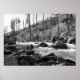 Una toma en blanco y negro del hermoso río americano en la parte California de las montañas de Sierra Nevada. Lo filmé durante un período de tiempo más largo de lo normal para que el agua casi niebla sobre las rocas.