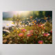 Río con flores rosas y amarillas en el primer plano Esta imagen muestra un río que fluye a través de un paisaje montañoso con flores rosas que crecen a lo largo de sus orillas. Las montañas se encuentran en el fondo, lo que proporciona un paisaje impresionante. Las flores rosas en primer plano le dan un toque de color y belleza a la imagen.