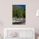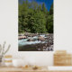 Impresionante acuarela efecto cruzado de cepillo seco en esta imagen de riachuelos con rocas, árboles y un cielo azul oscuro.