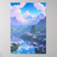 Un río tranquilo y sereno fluye a través de un hermoso valle, rodeado de exuberante vegetación y delicados arbustos rosas en plena floración. A lo lejos, las montañas nubladas le dan un ambiente tranquilo a esta impresionante escena. Esta obra de arte digital captura la esencia pacífica y apacible de un paisaje natural, una adición serena y relajante a cualquier espacio.