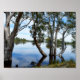 La foto es una larga vista del poderoso río Murray en Australia con árboles de ciruelas