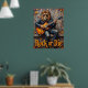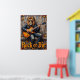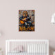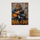 Esta dinámica obra de arte retrata a un león, luciendo sin esfuerzo fresco con gafas de sol y una chaqueta de cuero, "triturando" magistralmente una guitarra eléctrica mientras se sienta sobre una cornisa de madera desgastada. El fondo es una pared de madera ricamente texturada, adornada con hojas de otoño dispersas. El grueso y expresivo deterioro crea una textura tangible, haciendo que la declaración "Rock or Die" resuene con la energía cruda de la actuación.
