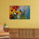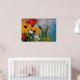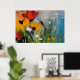 Esta evocadora obra de arte abstracta captura la sensación de una pradera junto al río a través de una rica textura, color en capas y pinceladas expresivas. Explosiones cálidas de flores rojas y doradas amarillas emergen de verdes exuberantes, mientras que azules suaves y grises brumosos sugieren agua, cielo y reflejos suaves cercanos. La aplicación de pintura gruesa y las pinceladas visibles de la espátula dan a la pieza una cualidad táctil, casi inmersiva, como si la escena estuviera viva con brisa y movimiento.