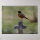 Un ladrón encaramado sobre una lápida con forma de cruz. Esta foto fue tomada en un cementerio en Poughkeepsie, NY en un hermoso día soleado por Debbie Quick de Debs Creative Images. Para ver más fotos de Debbie, visita su sitio web en: www.debscreativeimages.com