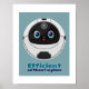 Poster con una linda aspiradora robot con cara y el texto kawaii "Eficiente sin plan". Graciosa decoración de arte casero para todos los que aman a sus pequeñas ayudantes domésticos.