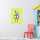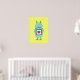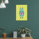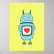 Poster íntimo con un ilustracion personalizado de un torpe robot personalizado azul sujetando un plato con un corazón sobre fondo amarillo verdoso brillante. Este poster robot es adecuado para niños que aman los robots. También será un gran regalo para los geeks.