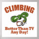 LIMBING - ¡MEJOR QUE LA TV CUALQUIER DÍA! ¿Más bien estar en el exterior escalando que en el interior viendo televisión? Entonces esta es para ti. Colores ricos y diseño único - cuerda de escalada verde y carabinero naranja quemado. Un gran regalo para los alpinistas - niños o adultos.