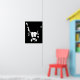 Mano iluminada estrepitosamente en el saludo rocoso en la oscuridad. Gráfica en blanco y negro, en camisetas, caramelos, cartas, regalos.