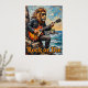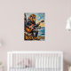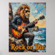 Esta vibrante obra de arte cuenta con un león fresco, gafas de sol y una chaqueta de cuero, que toca intensamente una guitarra eléctrica sobre una roca con vistas a un océano dinámico y lleno de olas. Un atardecer intenso ilumina el cielo y la costa lejana. Las gruesas pinceladas texturizadas del cuadro le dan a la escena un aire crudo y enérgico, con el "Rock or Die" mostrado audazmente abajo, encarnando un espíritu rebelde.