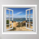 Vista al mar, escenario de una falsa ventana en la playa, para un despacho sin ventanas. Poster de ilusión óptica de paisaje muy realista que se vería genial en una oficina o en una pared de estudio.