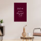 Dale la bienvenida a tus invitados a un día de celebración especial con este elegante cartel de bienvenida rojo borgoña y blanco. Este póster presenta tipografía moderna "Bienvenidos a la Fiesta de Jubilación" con un diseño simple. Puedes personalizar el nombre y la fecha. Las invitaciones y suministros para fiestas a juego están disponibles en mi tienda BaraBomDesign.
