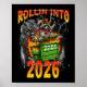 Póster Rollin Into 2026 New Year 2026 Raccoon Cowboy Vint