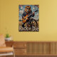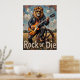 Esta obra de arte imaginativa exhibe un león, una verdadera estrella de rock con gafas de sol y una chaqueta de cuero, desatando "truenos rodados" con un solo de guitarra eléctrica. Su escenario es una rueda rústica de madera en un campo dorado bajo un amplio cielo. Los trazos audaces y texturados le dan un aire puro y enérgico a la escena, capturando perfectamente la actitud de "Rock or Die" de esta inesperada actuación de la naturaleza salvaje.