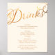 Este romántico cartel de menú de bebidas, con florituras y caligrafía elegantes, es perfecto para un boda clásico vintage. Nota: Este diseño no tiene Relieve metalizado oro real. Es un gráfico de alta calidad hecho para parecer un Relieve metalizado dorado.