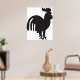 Una silueta de gallo en negro. Este diseño parece realmente efectivo en este Poster