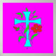 pintalabios de color rosa con un patrón de cruz azul cielo y una flor roja