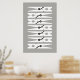 Una manera divertida de iluminar la tarea mundana de lavar ropa, esta gran huella poster puede ser colgada vertical u horizontalmente y cuenta con una colección de pines de ropa simplemente ilustrados en un fondo negro y blanco clásico sobre un fondo gris. Personalice esta imagen para que se adapte a su propia paleta de colores utilizando el vínculo personalizar adicional para cambiar el color de fondo a uno de sus opciones.