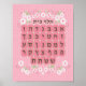 El rosa Alef Beis Poster con flores blancas. Dulce para cualquier habitación de chica. Representación clara de las letras hebreas.