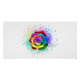 Rosa grande y floreciente con pétalos de arco iris sobre fondo blanco, pintado con salpicaduras de pintura colorida y brillante. 3.ª