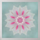 Un delicado Lotus mandala en los delicados tonos rosa y magenta de un azalea primaveral, sobre un fondo turquesa texturado.