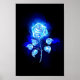 Rosa abstracto en flama azul sobre fondo negro. Rosa de incendios.