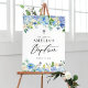 Bienvenido a tu evento con este cartel de bienvenida de bautismo de personalizable. Tiene acuarelas florales de rosas azules, púrpura y blanca, anémonas e hidrangeas. Personalice este signo de bautismo floral agregando los detalles de su evento. Esta señal de bienvenida de bautismo hidrangea es perfecta para eventos de primavera e invierno.