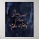 Póster Rosa de acuarela azul marino El amor de oro es dul