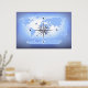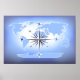 Póster Rosa de brújula azul Mapa mundial Poster de impres