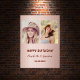 Un cartel fotográfico para 2 personas, amigos, hermanas, gemelos. Fondo subió de gradiente dorado. Personalizar y añadir 2 fotos, nombres y fechas