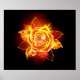 Rosa en llamas del fuego y la llama sobre fondo negro.