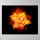 Rosa en llamas del fuego y la llama sobre fondo negro.
