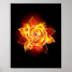 Rosa en llamas del fuego y la llama sobre fondo negro.