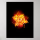 Rosa en llamas del fuego y la llama sobre fondo negro.