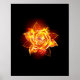 Rosa en llamas del fuego y la llama sobre fondo negro.