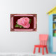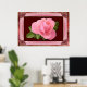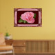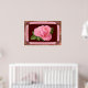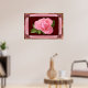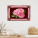 La encantadora impresión floral cuenta con una rica rosa rosa rosa sobre fondo burdeos profundo y enmarcada con un borde rosa y borgoña.