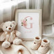 Clásica y moderna letra serif G con un falso rosa purpurina de oro y coordinación de oro y rosa purpurina de color gris rosa decoración de ramo floral. Personalizar el estilo de letra y el color para crear su propio poster personalizado. Puedes mover el ramo de flores si deseas un lugar diferente. La flor de purpurina glam y los gráficos de fondo son todos efectos creados digitalmente e imprimirán planos como una foto.