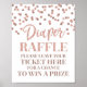 Señal de rifa de pañal para la ducha de bebé en un patrón de confeti de oro rosa.