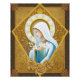 Este diseño está inspirado en una hermosa calcomanía pintada y bordada sobre una vestimenta católica romana usada para masas de la Madre Bendita. Lleva un tallo de mentiras en las manos, un ramo de rosas la envuelve, un halo corona la cabeza.