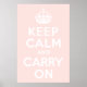 Rosa y blanco maloliente "Keep Calm and Carry On" versión moderna de poster clásico.