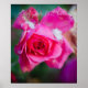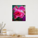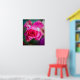 Poster con temática floral que presenta una foto de una rosa grande rosa con copos de nieve sobre fondo verde oscuro. Un lugar colorido para tu vida o espacio de trabajo. Funcionará especialmente bien con el estilo rústico y rústico y de estilo boho. Por favor, personalícelo, agregando su propio texto. Para más modificaciones (estilo de fuente, color de fuente, posición de texto), haga clic en "Editar diseño".