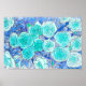 Poster con delicado arte floral, florecientes rosas en un jardín, tonos azules y turquesas. Esbozo de tinta y pastas suaves, ajustes de color. © Clipso-Callipso / Julia Khoroshikh www.juliakhoroshikh.art #blueroses #roseflowers #floralart #floralsketch #florals #botan#floralprint #vintagefloral #zazzlemade