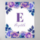 Póster Rosas azules y morados. Monograma de niña. Nursera
