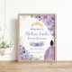 Personalice esta señal de bienvenida de moda Quinceañera / fiesta de cumpleaños de forma fácil y rápida, simplemente pulse el botón personalizar it para reorganizar y formatear el estilo y la ubicación del texto. Esta decoración de señas presenta magníficos acentos púrpura, lila, floral de lavanda y dorados. ¡Todo el texto es editable! Ideal para Quinceañera, dulce 16, fiesta de cumpleaños, ducha de novia, bautizo / bautismo y más! ¡Artículos coincidentes disponibles en la tienda! (c) El estudio Happy Cat Studio.