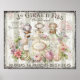 Viejo Perfume Botella Rosas Poster de escritura francesa sobre un afligido fondo metalizado rayado verde gris! Horizontal 10" x 8"