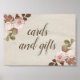 Diseñado para coincidir con nuestra colección de Rosas franceses Vintage, este elegante cartel floral le permite a los huéspedes saber dónde dejar sus tarjetas y regalos. Personalice con tres líneas de texto personalizado en letras de caligrafía enmarcadas por rosas franceses con flores acrílicas y follaje verde en las esquinas.