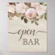 Póster Rosas franceses de época Rótulo Boda "Open Bar"