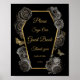 Rosas Negros y Oro Coffin Boda Gótico Rótulo Mesa del Libro de Invitados. El diseño presenta un ataúd metálico de oro con rosas negros y dorados decorando el marco sobre un fondo negro. Dos mariposas doradas se frotaban entre los rosas. El Relieve metalizado y purpurina de oro no es un Relieve metalizado/purpurina "real" sino un efecto impreso. Personalice el texto y cambie el estilo de fuente y el color a la medida.