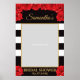 Este hermoso accesorio de foto de boda presenta rosas florecidas de color rojo intenso y rayas negras combinadas con letras de caligrafía elegante