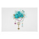 Llave de oro antiguo con rosas turquesa de moda decorados con hojas de oro blanco y cuentas rosas y azules. Color de moda. Rosas turquesas. Oro blanco. Tifanía azul.