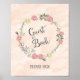 Impresión poster para el signo del libro de invitados boda con rosas de diseño de corona y fondo de acuarela.